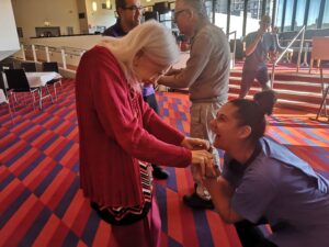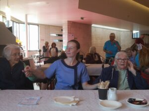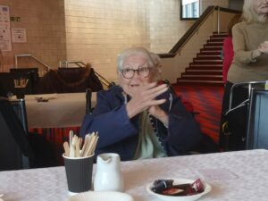 This morning residents enjoyed a lovely trip out to the crucible theatre for their monthly tea dance which was great fun. We had a brilliant time singing and dancing along to some absolute classics like Blue Suede Shoes, Tipperary and Halfway to Paradise sung by the fabulous Russ Elliott. We also enjoyed a nice cup of tea and a scone which was very nice morning and everyone had a great time.