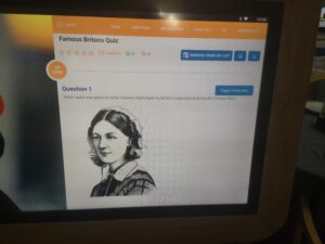 This afternoon we tested our knowledge on a famous Briton quiz; we had a few good guesses and learnt a lot about the history of the UK. We finished on 13/20 and enjoyed a well-deserved hot chocolate with cream.