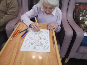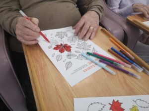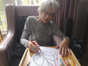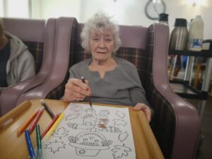 This morning residents enjoyed doing some colouring in the main lounge which was good fun. We had a lovely time colouring in different autumn and Halloween themed pictures including scarecrows, leaves and pumpkins which was very nice. We also enjoyed chatting to each other and reminiscing about our favourite hobbies and pastimes which was lovely.