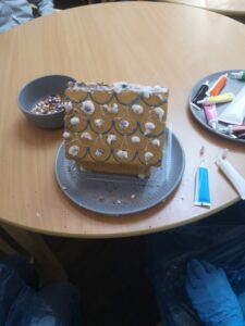This morning residents enjoyed a baking session, we had some gingerbread houses that we decorated with spooky icing, some chose to put a cobweb on them, other’s chose to design a spider.