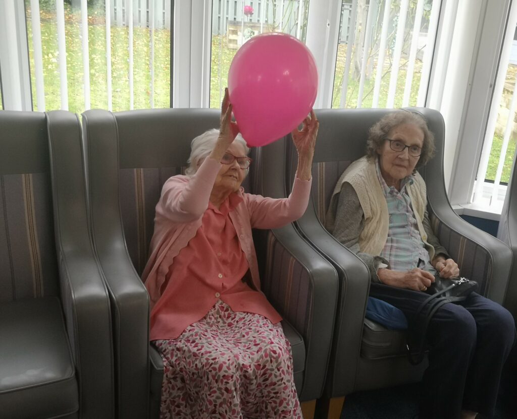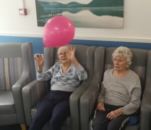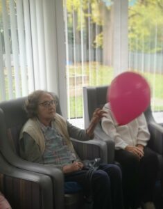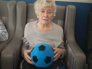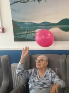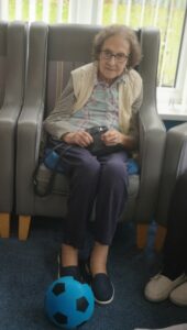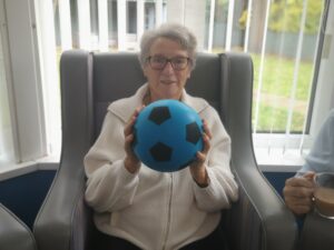 This morning, we had quite an active game of indoor football, we got the goals out and took it in turns to see how many goals we could score in a row, we also got a balloon out as some residents wanted to play catch and balloon tennis instead.