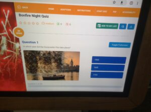 This afternoon we tested our knowledge on a few quiz’s on our interactive tablet , we started with a famous Briton quiz; we also tested our knowledge on a Bonfire Night quiz, we also had a go at a pub quiz, we had a few good guesses and knew quite a lot too, afterwards we all enjoyed a well-deserved hot chocolate with cream.