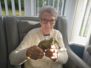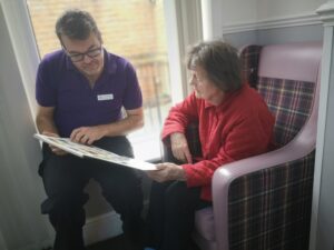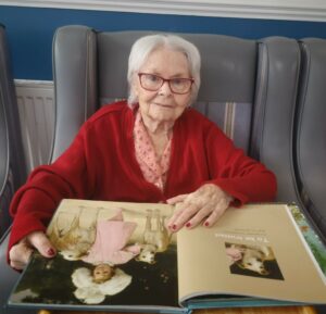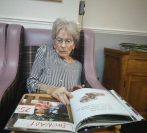 This Morning residents enjoyed a reminiscing session  with staff looking at books about pets, childhood memories, family life and proverbs and sayings , we enjoyed chatting about our home life and jobs and how we remember the world as it was , We enjoyed talking about previous pets, we also looked at a book about Sheffield’s industrial history and chatted about how Sheffield is famous for it’s cutlery, and got some old brass ornaments out too and discussed how we used to polish them up with brasso.  It made a interesting morning 😊