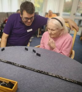 This afternoon we had a lovely social game of dominos, a few of the residents joined in, but weren’t to sure of the rules, we talked them through it and they soon got the hang of it. This ended up being a very enjoyable afternoon with lots of fun and laughter.