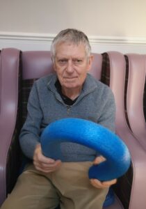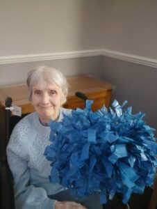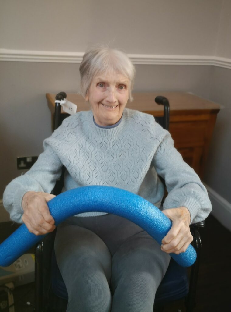 This morning residents enjoyed taking part in our weekly motion session in the main lounge which was great fun. We had a wonderful time taking part in all the different stretches and exercises using a range of equipment. We also enjoyed a nice sing song to tunes like The Grand Old Duke of York and Row Row your Boat which was lovely.