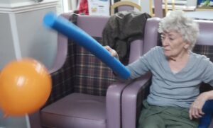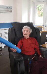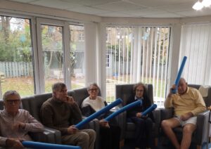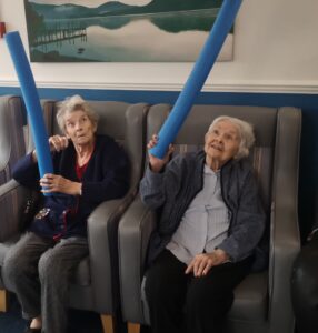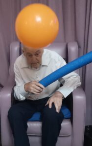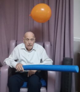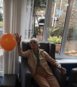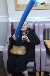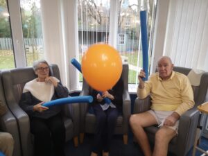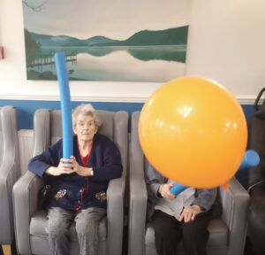 This afternoon we all gathered in the main lounge and conservatory for a much-loved game of balloon tennis. It’s one of our favourite activities, and we had great fun hitting and tossing the balloons back and forth with plenty of smiles all around.