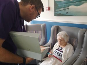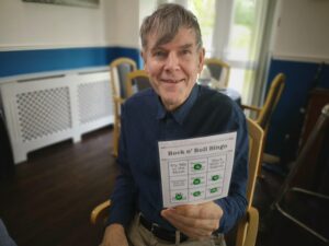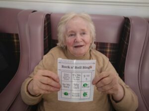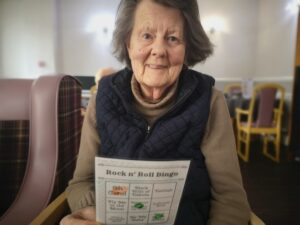 This morning, we had a number of games of music bingo, we played out some old classics on the speaker and marked them off as we saw them on the card, we all enjoyed a good sing and dance and the winner’s enjoyed picking a pen from the prize box.