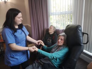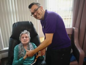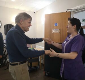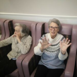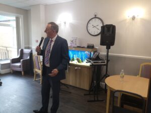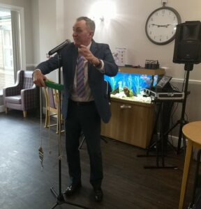 This afternoon, residents enjoyed celebrating Peter’s birthday in the main lounge. We had a brilliant time being entertained by Andy Greaves who sang a range of songs from Sweet Caroline to Teenager in Love, everyone had a singalong and did lots of chair dancing, which was lovely. He also did some magic tricks which were great to marvel at. Afterwards we brought Peter’s cake out and all sang Happy Birthday to him as he blew the candles out.