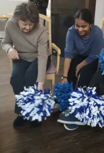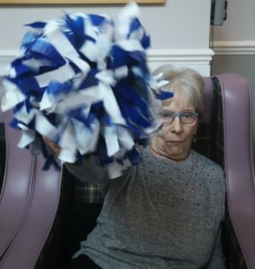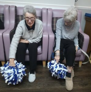 This morning the residents enjoyed our weekly motion exercise class, there was a range of exercise using poms poms, pool noodles and some resistance bands.