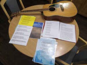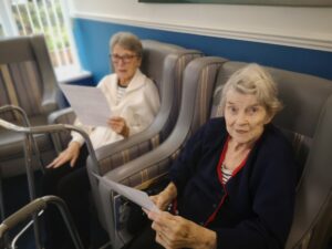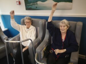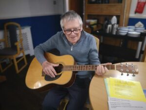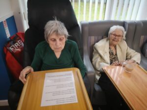 Residents enjoyed a relaxing church service in the Conservatory this morning. Residents from many different denominations, all getting together to worship God in prayer and song. We listened to some lovely old hymns via YouTube, with beautiful countryside and sea views. Staff played some old Sunday school songs on guitar and Martin had a go too, which boosted his confidence.