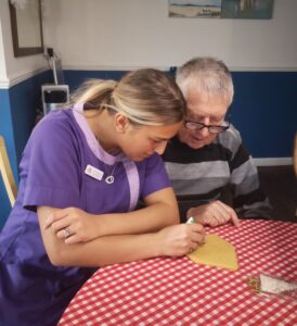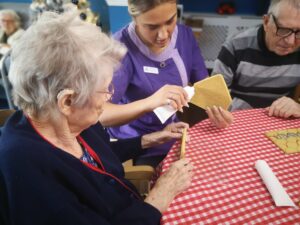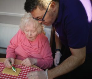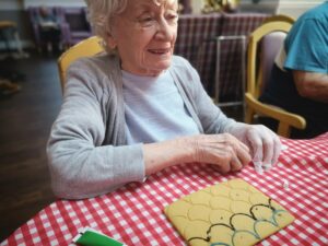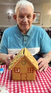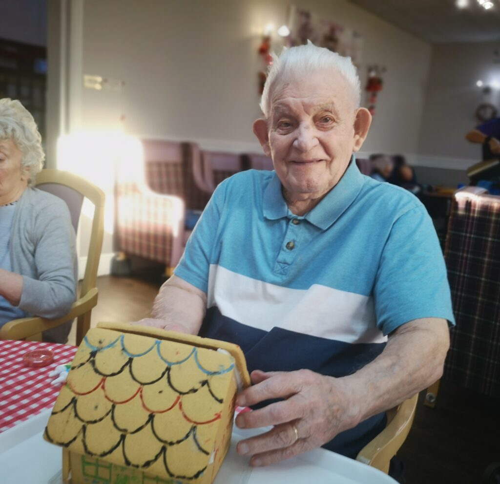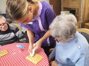 This morning residents enjoyed a fun-filled session of decorating gingerbread houses with staff while listening to some festive Christmas music that inspired some dancing and jokes. This activity helped residents get into the Christmas spirit in a fun and creative way. A fun time was had by all.