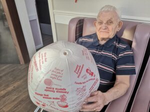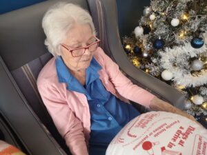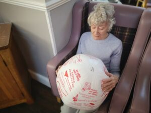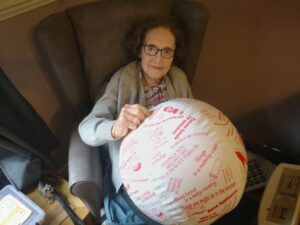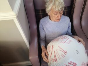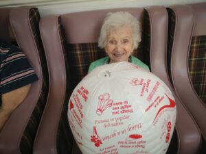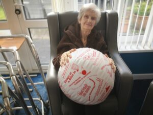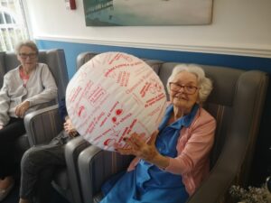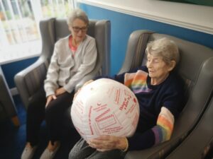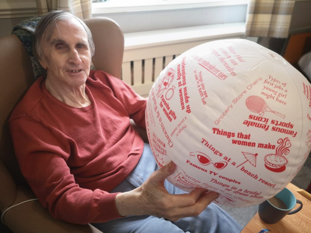 Residents enjoyed a fun-filled Memory Ball Game, helping provide physical exercise (throwing and catching) as well as memory stimulation and reminiscence. We had great fun touching on all sorts of subjects, favourite TV programmes, chocolate, cleaning products, etc. A lovely group game, which also worked well as a 1-1 activity.