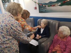 This afternoon, residents enjoyed gathering in the conservatory for our monthly Holy Communion service. We had a fantastic time listening to all the different prayers and hymns which were very nice. We also enjoyed finishing the service off by singing we wish you a merry Christmas all together which was lovely.
