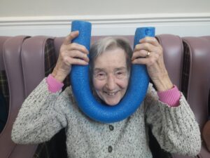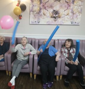 This morning residents enjoyed the weekly motion exercise class, we used a variety of equipment such as pool noodles, pom poms and resistance bands . We even managed a quick game of balloon tennis.