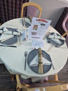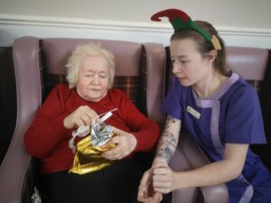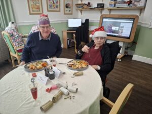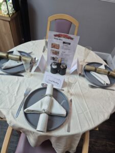 Residents enjoyed a lovely Christmas day with lots happening , we started with opening our gifts and having a chat with staff about all our Christmases and then we have a little rest while family visited and we enjoyed mince pies , we then got ready for our Christmas lunch wearing Christmas glasses and hats and enjoyed a lovely Christmas lunch made by our amazing Kitchen staff , Residents enjoyed pulling crackers together , To finish the day we enjoyed opening more presents and watch a Christmas movie with the lights dimmed and Christmas tree lights glowing while enjoying another mince pie and hot chocolate with cream and marshmallows , we also enjoyed a Christmas buffet tea and Christmas cake 😊