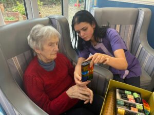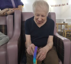 This afternoon residents enjoyed a calming sensory session in which they were offered a variety of sensory toys and smelling oils which stimulated their minds and fulfilled their sensory needs. They greatly enjoyed smelling the different scents and guessing what it was.