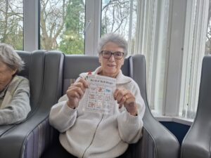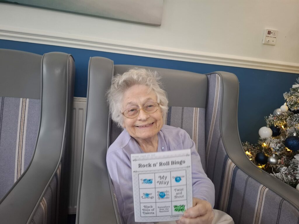 This morning residents enjoyed a lovely time taking pert in some music bingo which was great fun/ We had a fantastic time listening to some classics by artists such as Elvis Presley, Englebert Humperdink and Frank Sinatra which was brilliant. We enjoyed singing along to all these classic songs and also chatting about our favourite songs and artists.