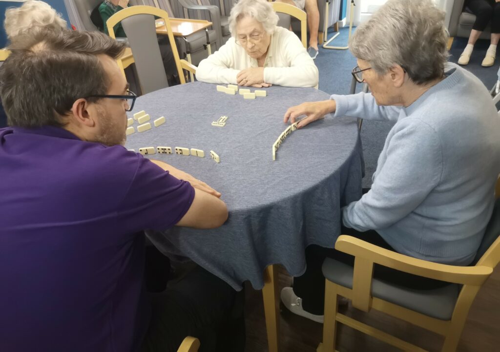 This afternoon residents enjoyed a games afternoon, they chose to play dominoes and once we got used to the rules again we had quite a friendly competition with Jim and Janet winning a few games each.