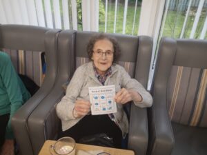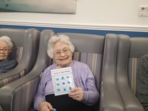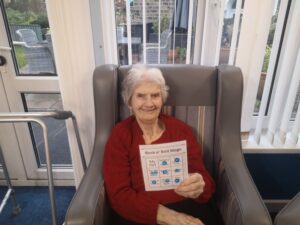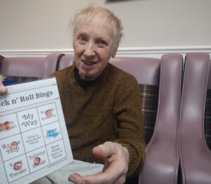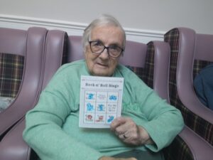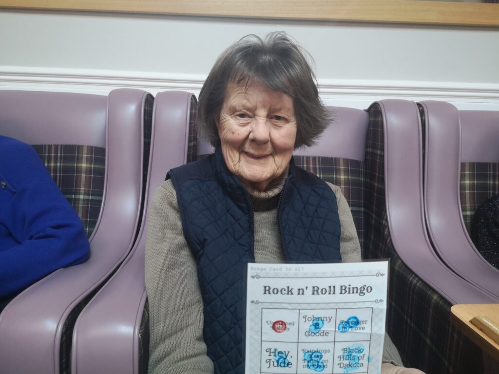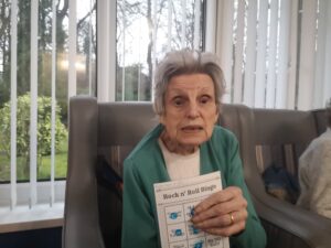 This afternoon residents enjoyed taking part in music bingo in the main lounge and conservatory which was great fun. We all had a wonderful time completing our bingo as well as having a nice sing along to some absolute classics including Fly Me to The Moon, Blue Suede Shoes and Stand by Me. We all enjoyed having a little bit of a dance whilst we were enjoying the bingo which was lovely.