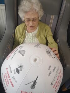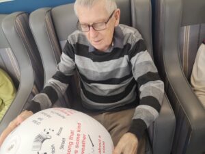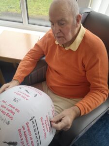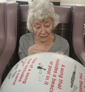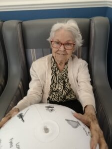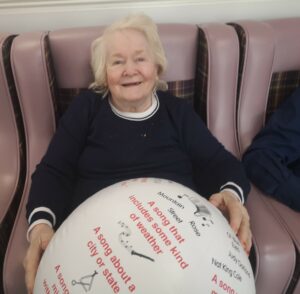 This morning resident enjoyed getting out the memory ball to test our knowledge and get our minds active. We enjoyed throwing and catching the ball with staff then answering the question on the ball where our hand landed. This really got us thinking and reminiscing about old hobbies and pastimes which made for a very pleasant morning.