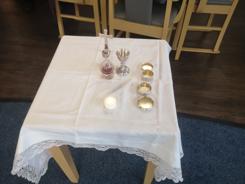 This afternoon residents enjoyed taking part in our monthly Holy Communion service in the conservatory. It was a lovely service delivered by the wonderful Frances and Linda who lead us with some prayers and hymns which we all enjoyed joining in with.