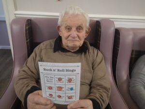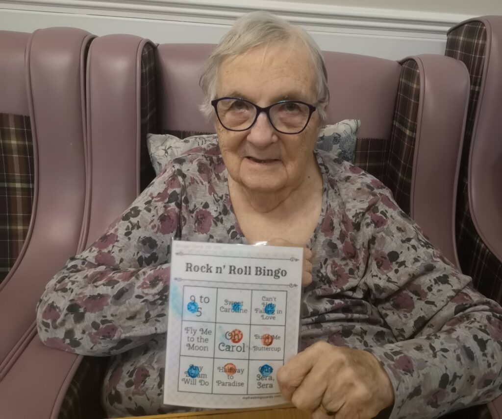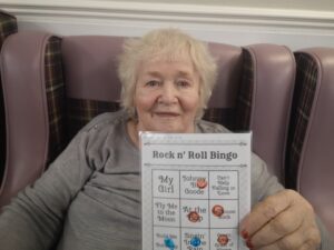 This afternoon residents enjoyed a relaxing game of music bingo, we played a variety of songs in a random order and they marked them off on their card trying to get a line first of all. Once we got a winner of a line, we carried on to get a full house.