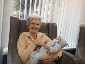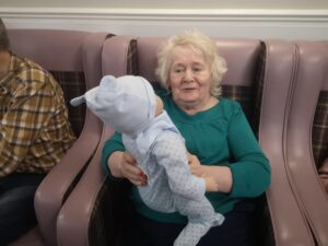 This afternoon, residents enjoyed a lovely time taking part in some doll therapy. It was a nice afternoon full of joy and laughter whilst coming up with some ideas of what we can call the baby. Residents also enjoyed reminiscing on when there children were young which was very nice.