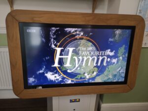 This morning residents enjoyed watching a church service on the interactive tablet.