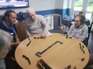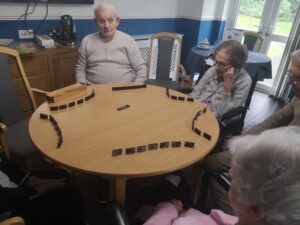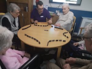 Many chose to play dominoes, whilst other watched. It was very entertaining and everyone enjoyed it with Jean and Lilian winning a game each.
