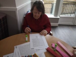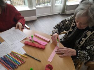 This afternoon residents enjoyed taking part in some valentines crafts which was great fun. We had a lovely time doing some different crafts and puzzles including wordsearches, colouring pages and making valentines themed paper chains which we can use for decorations for our Valentines party. This made for a wonderful afternoon full of chatting and crafting which was great fun and cheered us all up.