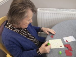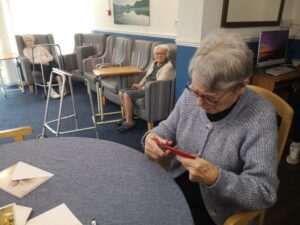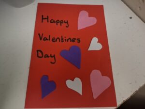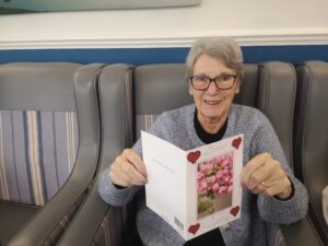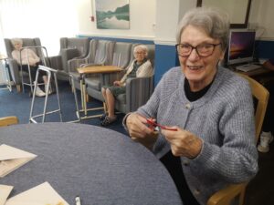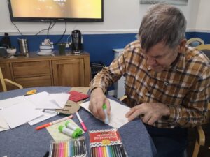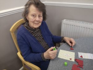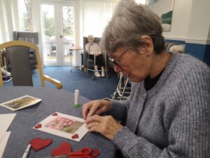 Residents enjoyed a morning of card making in preparation for Valentine’s Day. We had fun cutting out and sticking hearts onto cards and writing messages of love and appreciation. We also enjoyed listening to romantic music on YouTube, sharing memories and doing a Valentine’s Day quiz. Some chose to do some colouring in.