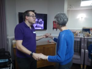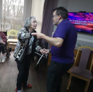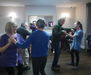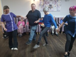 This afternoon, residents enjoyed taking part in some dance and movement in the main lounge which was great fun. We had a wonderful time singing and dancing along to some classic songs from the 50’s and 60’s including Footloose, Penny Arcade, Johny B Goode and many more. This made for a really fun afternoon and got everyone reminiscing on when they used to go out dancing.