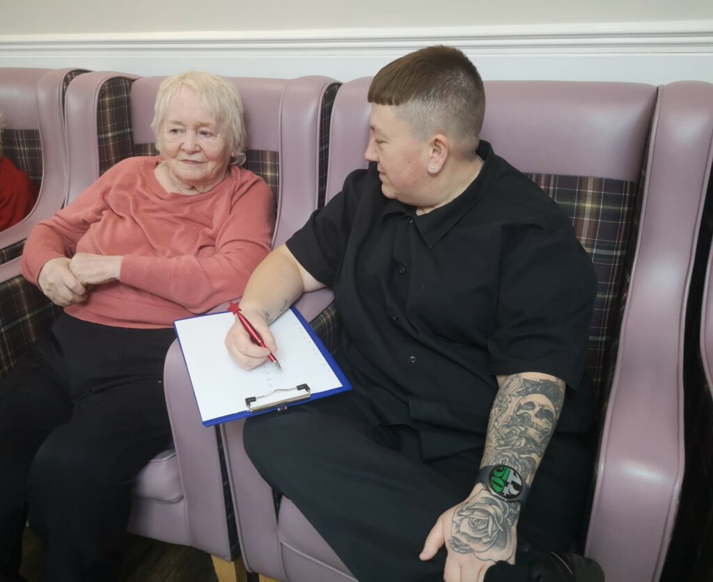 This afternoon the residents enjoyed a pub quiz that had a variety of questions revolving around general knowledge and their era’s. Staff assisted those who couldn’t write on the sheet which was followed by the residents being offered an alcoholic drink as a reward. This activity inspired laughter and competitive spirit as they all raced to answer the questions correctly. A good time was had by all.
