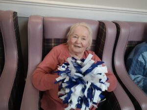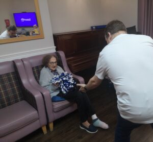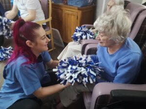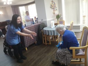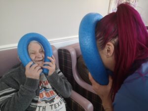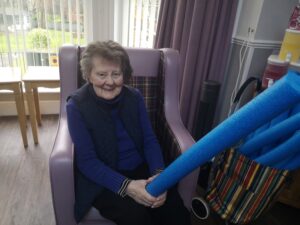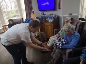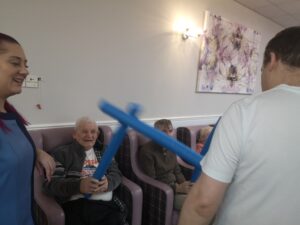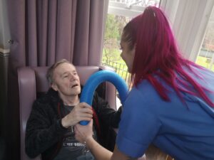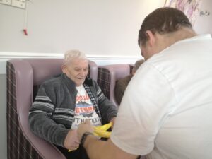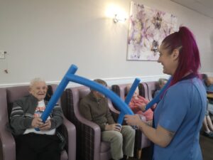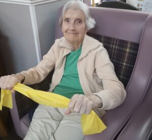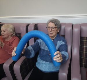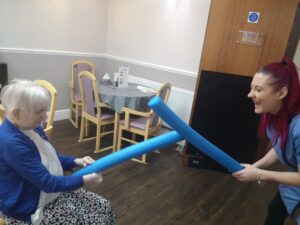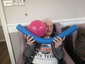 This morning the residents had a lovely session of motion led by Aaron which included various exercises and games such as exercising with a band and balloon tennis. These exercises were followed up by refreshing juice drinks that encouraged the residents to interact and laugh with one another. A good time was had by all.