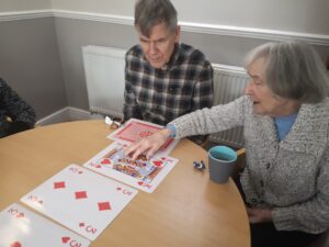 This afternoon, residents enjoyed gathering in the main lounge for some board games whilst enjoying a nice hot chocolate with cream and marshmallows. We had a wonderful time playing games such as dominoes, high or lower and picture match which was great fun. This made for a lovely afternoon with some friendly competition. We also enjoyed chatting to each other and reminiscing on when we used to take part in game nights with our friends.