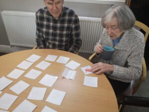 This afternoon, residents enjoyed gathering in the main lounge for some board games whilst enjoying a nice hot chocolate with cream and marshmallows. We had a wonderful time playing games such as dominoes, high or lower and picture match which was great fun. This made for a lovely afternoon with some friendly competition. We also enjoyed chatting to each other and reminiscing on when we used to take part in game nights with our friends.