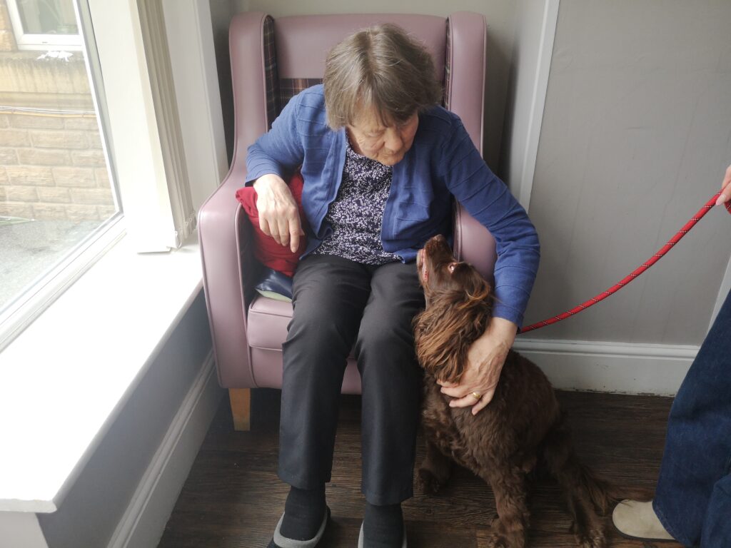 Residents enjoyed a lovely time of Dog Therapy with the Beautiful Bella (brought along by her owner, Evie). Great to reminisce about their own dogs, as well as having a therapeutic sensory experience.