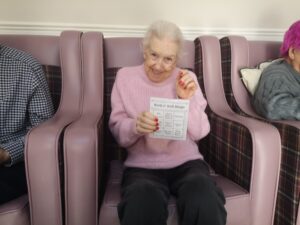 This morning, residents enjoyed taking part in music bingo in the main lounge and conservatory which was great fun. We had a brilliant time singing and dancing along to the bingo songs including Johnny B. Goode, Blue Suede Shoes and Jailhouse Rock. This made for a nice fun morning with a little bit of friendly competition.