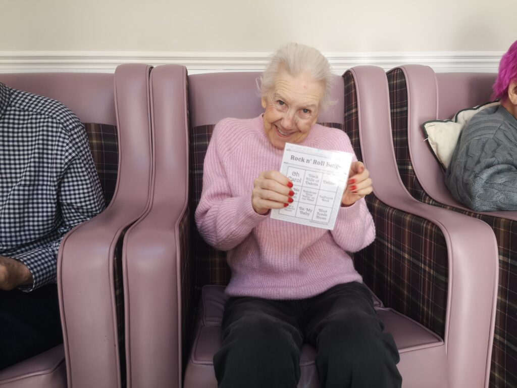 This morning, residents enjoyed taking part in music bingo in the main lounge and conservatory which was great fun. We had a brilliant time singing and dancing along to the bingo songs including Johnny B. Goode, Blue Suede Shoes and Jailhouse Rock. This made for a nice fun morning with a little bit of friendly competition.