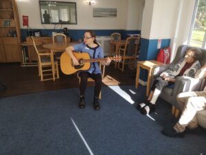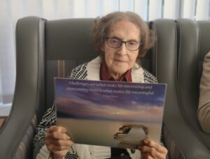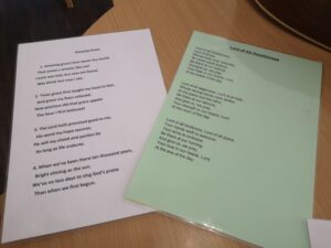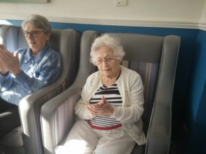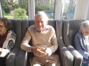 Residents enjoyed a lively Church Service in the Conservatory this morning. We recited prayers together, sang some wonderful action songs (including “All Things Bright and Beautiful”) and read out some scriptures/inspirational verses, discussing the beautiful pictures. Great to see the wonderful Spring garden and enjoy the warmth of the sunshine shining through the window. Cheered us all up no end.