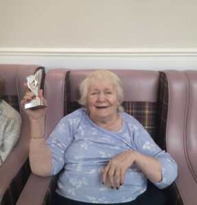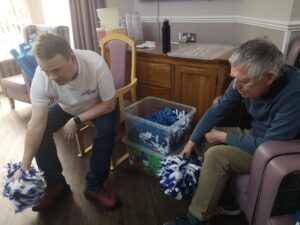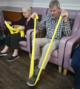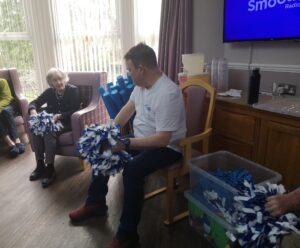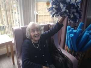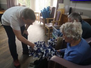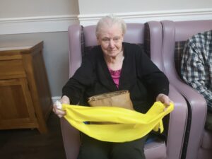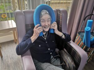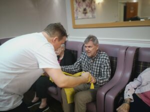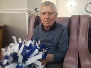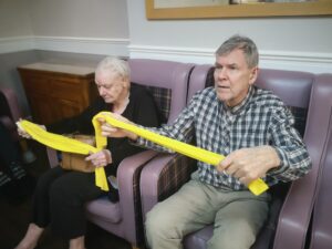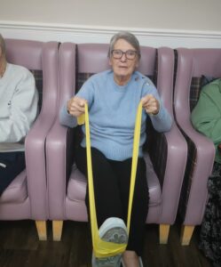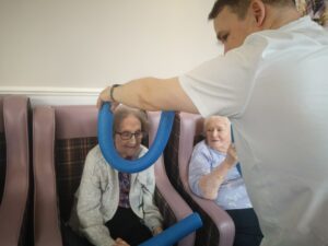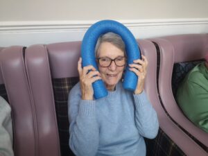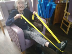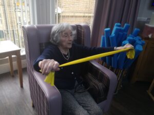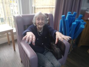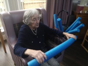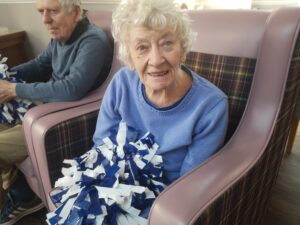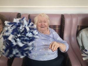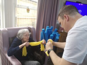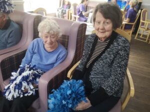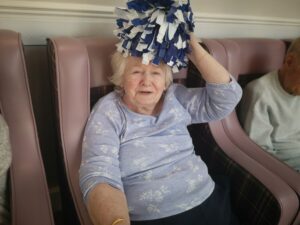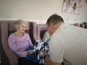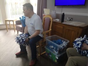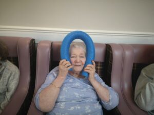 This morning the residents enjoyed their weekly session of motion which consisted of various exercises and games such as stretched and balloon tennis. Residents also very much enjoyed following Aaron’s instructions and shaking their pompoms while socialising with one another. A good time was had by all.