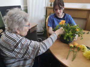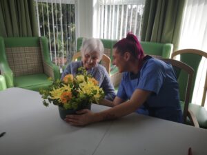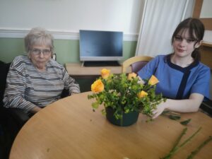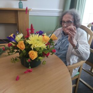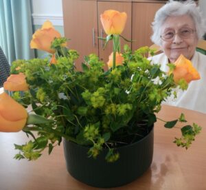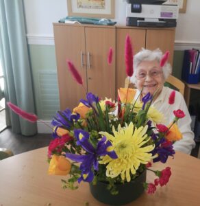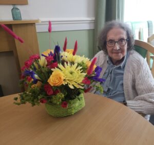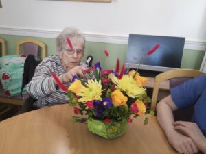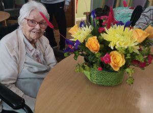This afternoon residents enjoyed a floristry session with Lucy; we arranged some beautiful flowers to make a posey for the tables to decoration our Mother’s Day and Peggy’s 100th Birthday Party tomorrow.