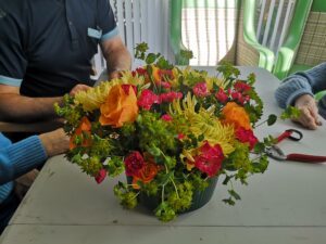 We spent time smelling, fluffing and arranging the different variety of flowers to make a lovely display. This was a very enjoyable session for everyone involved and we can’t wait for next month’s session.