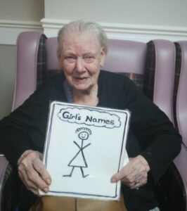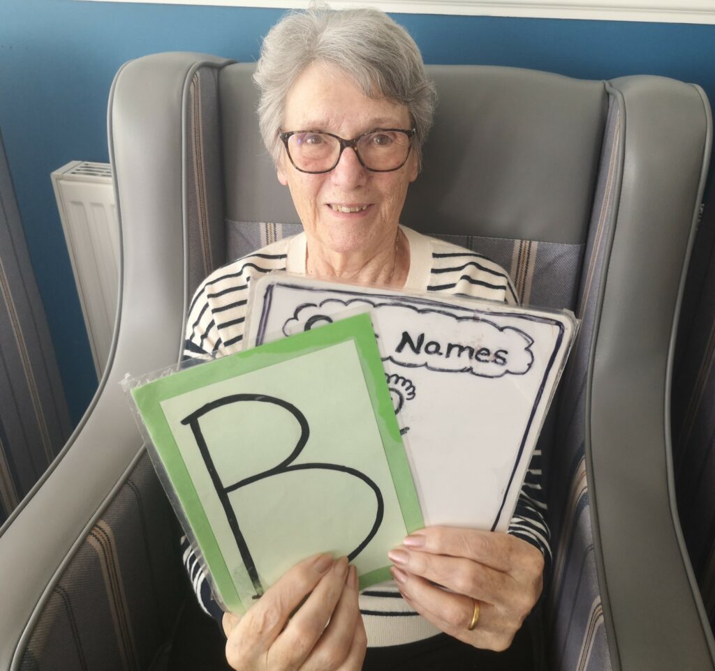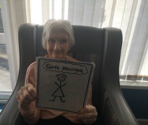 This afternoon residents enjoyed a few alphabet games, with categories such as Boy’s names, Girl’s names, occupations, fruit and vegetables and countries and cities in the world.
