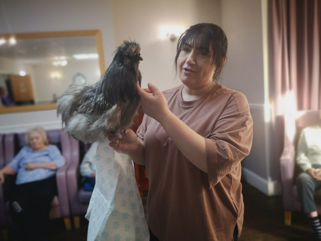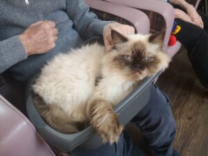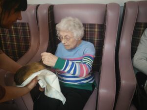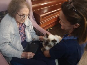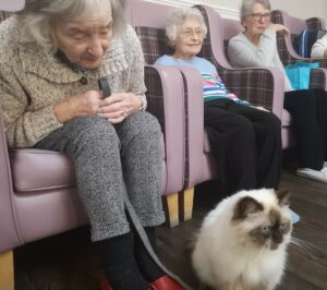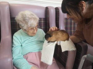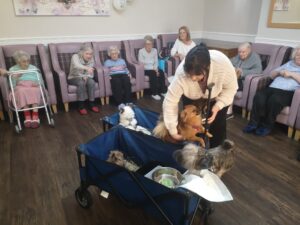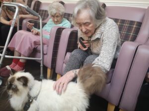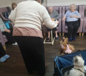 This afternoon, residents were shown a variety of performing animals brought in by Michelle, this included some dogs, cats and even a tortoise. Many residents enjoyed petting and playing with the animals, some even reminisced on their pets and happy memories were discussed.