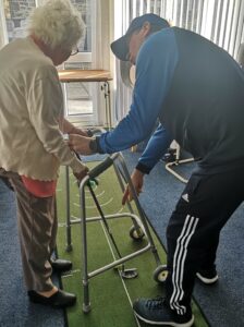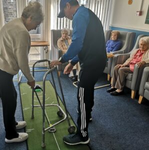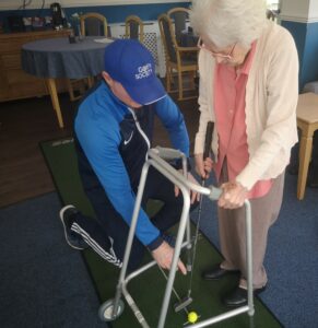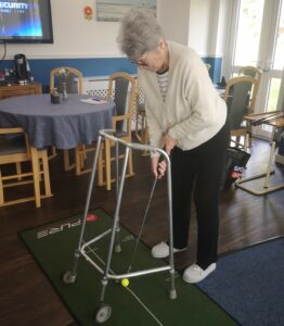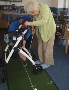 This afternoon, residents participated in a small golf tournament, with each one demonstrating great skills and energy, making good competition. Jean was crowned champion after scoring the most points and a good time was had by all.