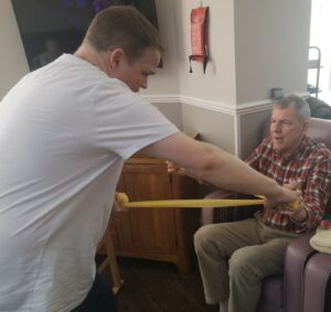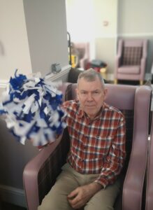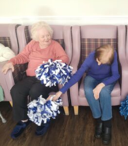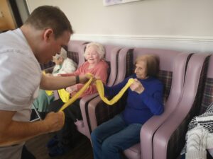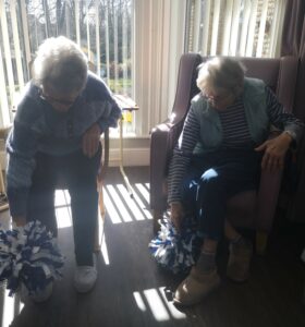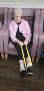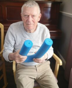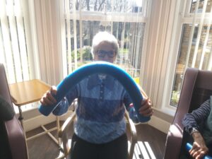 Residents enjoyed the weekly motion session this morning. This included a number of exercises with different types of equipment such as pool noodles, resistance bands and pom poms. They all seemed to have fun with these sessions and particularly love the games of balloon tennis we play. Jean was voted the motioner of the week for her continued involvement in all the different activities.