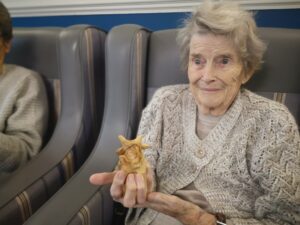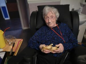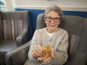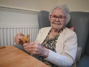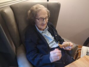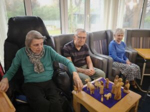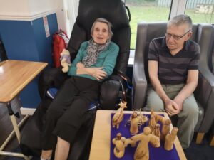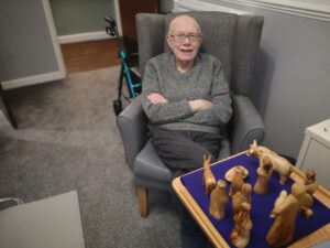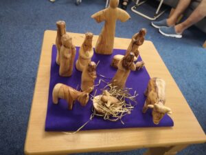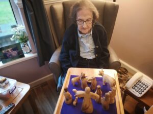 Residents were captivated by the Godly Play story of the Holy Family this morning. They were impressed with the olive wood figures and enjoyed a sensory experience, holding and admiring them. We had fun recalling the Christmas Nativity Story and sharing Christmas memories. We also sang some wonderful Christmas carols together, with Wendy giving us a beautiful solo of ‘Little Donkey’.
