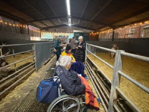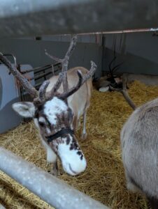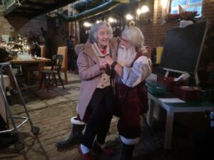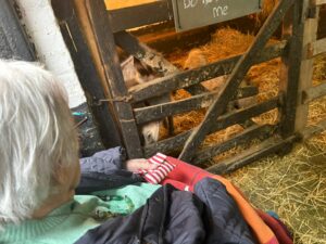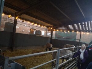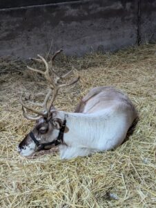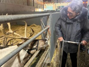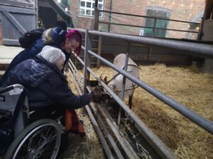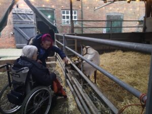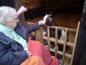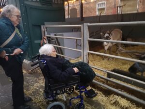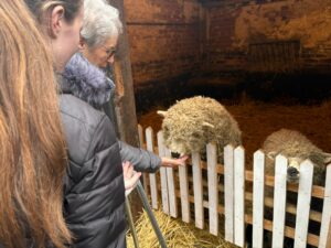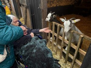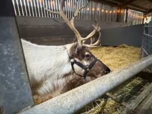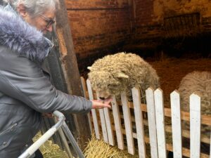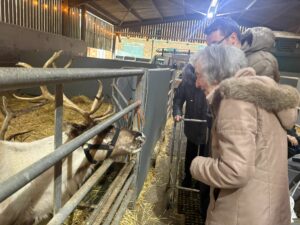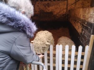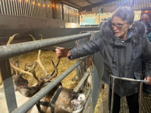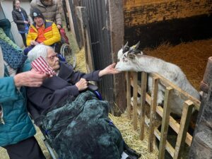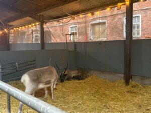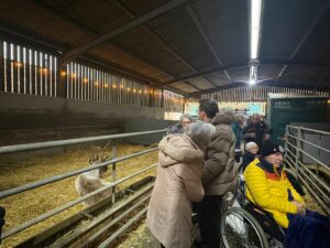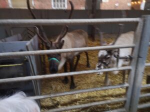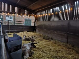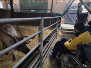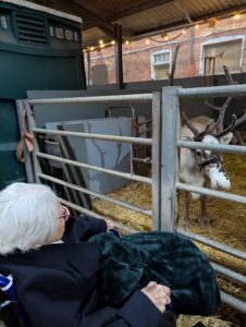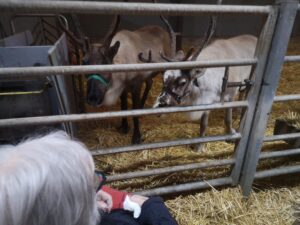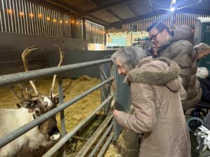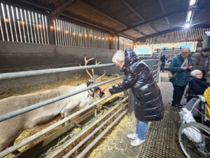 This afternoon, residents enjoyed a fun trip out to visit reindeers at Haughton Park farm in Retford which is run by a lovely family who took good care of us. We had a fantastic time seeing all the reindeers and other animals including a donkey which loved playing with his teddy and some goats and sheep which we even got to feed. We also enjoyed a lovely picnic style lunch in the barn with the family which own the farm who were fantastic and looked after us very well and made the day even more special with a visit from Santa.